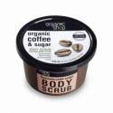 Wyjątkowy peeling ciała na bazie organicznego oleju kawowego i cukru trzcinowego sprawia, że oczyszczona skóra jest miękka i elastyczna, otulona zapachem świeżej kawy. Przeznaczony do każdego rodzaju skóry a szczególnie polecany dla osób, które borykają się z problemem cellulitu. Skóra jest wyraźnie dotleniona i odżywiona, zachowuje idealny poziom nawilżenia dzięki obecności masła shea, któyry przywraca skórze promienny i zdrowy wygląd. Peeling nie zawiera SLS, silikonów.