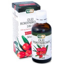 Olej rokitnikowy jest ważnym naturalnym źródłem karotenoidów i innych substancji biologicznie czynnych. Rokitnik przyczynia się do naturalnych reakcji obronnych organizmu i wspomaga układ odpornościowy. Korzystnie wpływa na aktywność układu pokarmowego, pobudza przemianę materii oraz wzmacnia układ sercowo-naczyniowy. Pomaga w utrzymaniu prawidłowych funkcji błon śluzowych oczu, przewodu pokarmowego i moczowo-płciowego ( w tym na nawilżenie pochwy) oraz pozytywnie wpływa na skórę. Witamina E pomaga chronić komórki przed stresem oksydacyjnym. Olej pozyskiwany jest metodą tłoczenia na zimno.