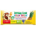 Lizaki są owocowe (tu ananasowy), kolorowe i bardzo smaczne - dostępne jest kilka smaków. Dzieci chętnie je jedzą i dostarczają do organizmu wartościowe składniki. Lizak zawiera naturalne aromaty i suszony owoc ananasa.